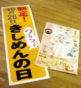 「きしめんの日」初年度の今年は、同日までに県内80店舗のきしめん店店頭で「きしめんの日」ポスターを貼り出したほか、県内で評判のきしめん店を紹介した「きしめんMAP」を観光施設に設置するなど、きしめん業界の活性化を図るそうです(=゚ω゚)人(゚ω゚=)!