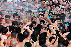 祭りは正式には「儺追(なおい)神事」といい、参道を埋める裸男に紛れ込んだ神男に触ると厄払いがかなうとされています。